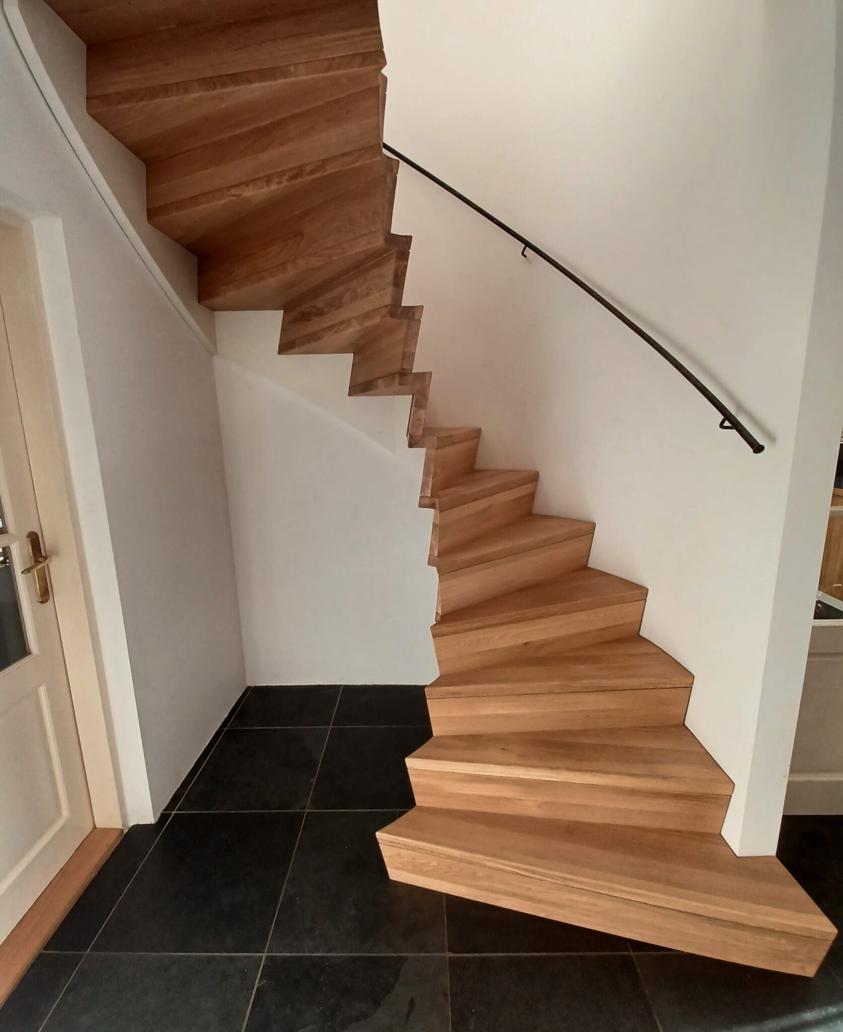 Deze trapvorm past perfect in moderne interieurs en wordt vaak toegepast in luxe woningen, lofts en designvilla’s. Door het ontbreken van stootborden en zichtbare trapbomen ontstaat een open, luchtige uitstraling.