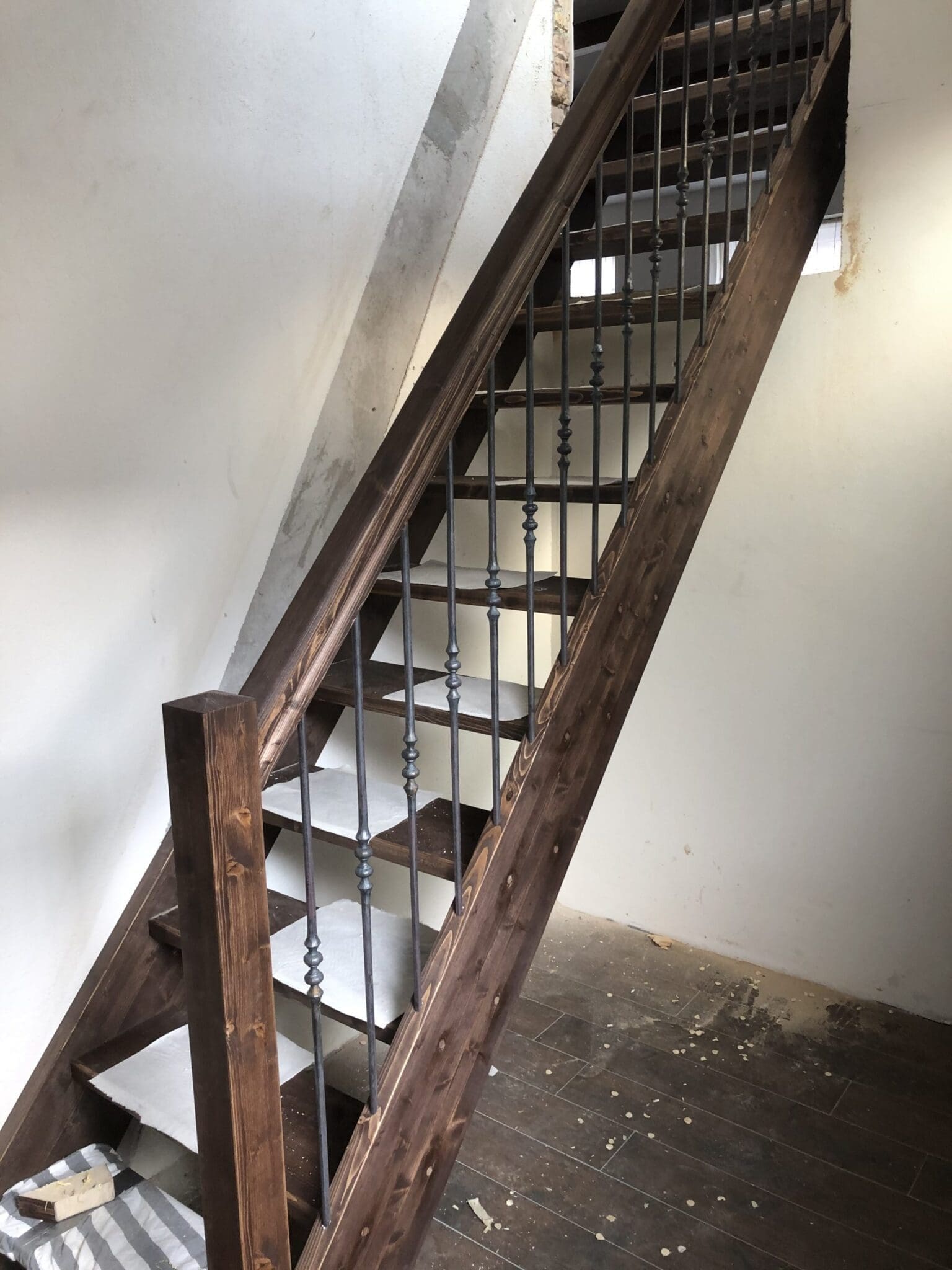 Deze mooie steektrap is een rechte trap die twee verdiepingen met elkaar verbindt. Het kenmerkende aan dit type trap is dat er geen draaiing in zit. De mooie donkere trap met zwarte spijlen geeft een klassieke uitstraling. En maakt van standaard, interessant.